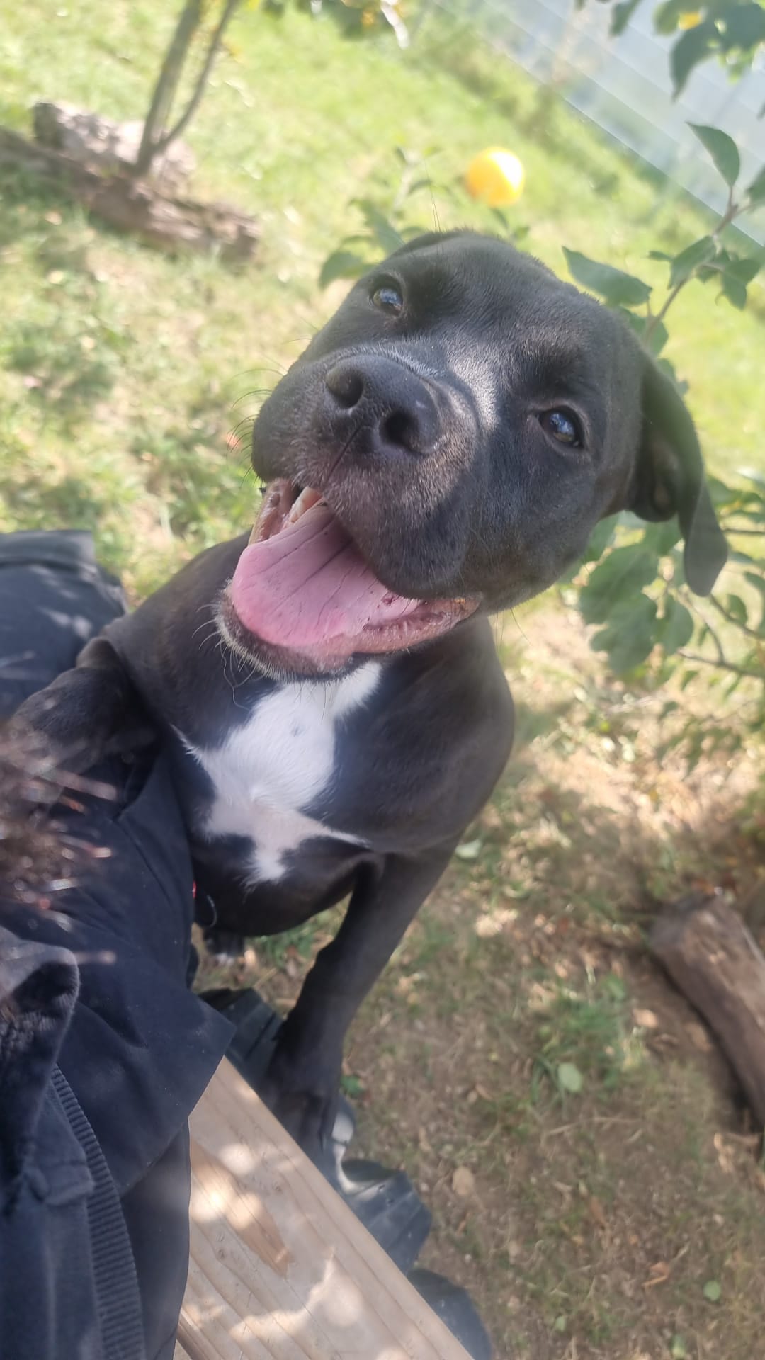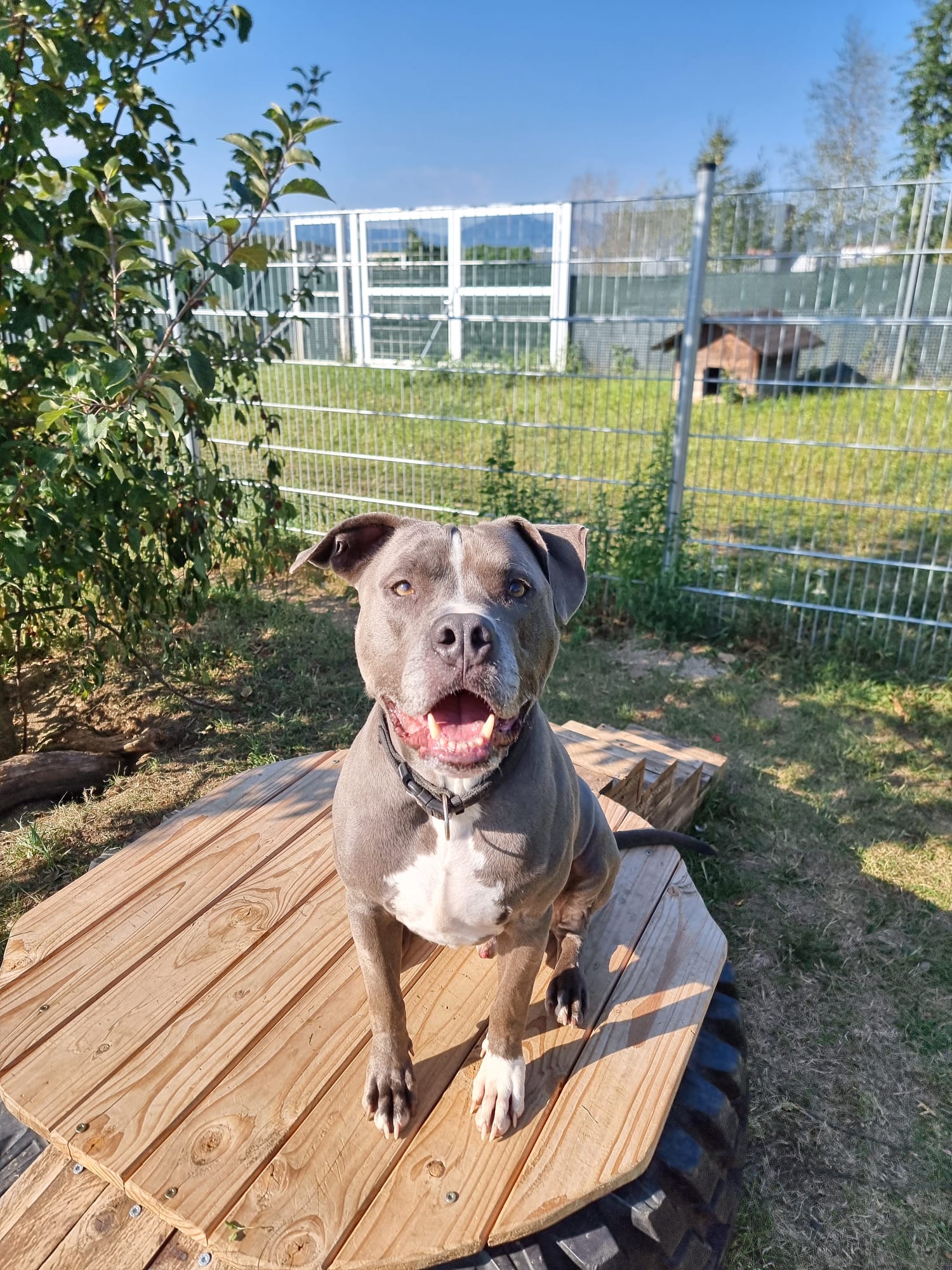 Staffirüde Loui, wurde von seiner Besitzerin nach einem Umzug allein zurückgelassen, seitdem ist er in der Obhut unseres Tierheims.